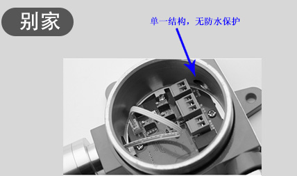 無(wú)單獨(dú)接線區(qū)域,需外加接線盒,成本增加,施工不方便。無(wú)防水處理,進(jìn)水后設(shè)備報(bào)廢。